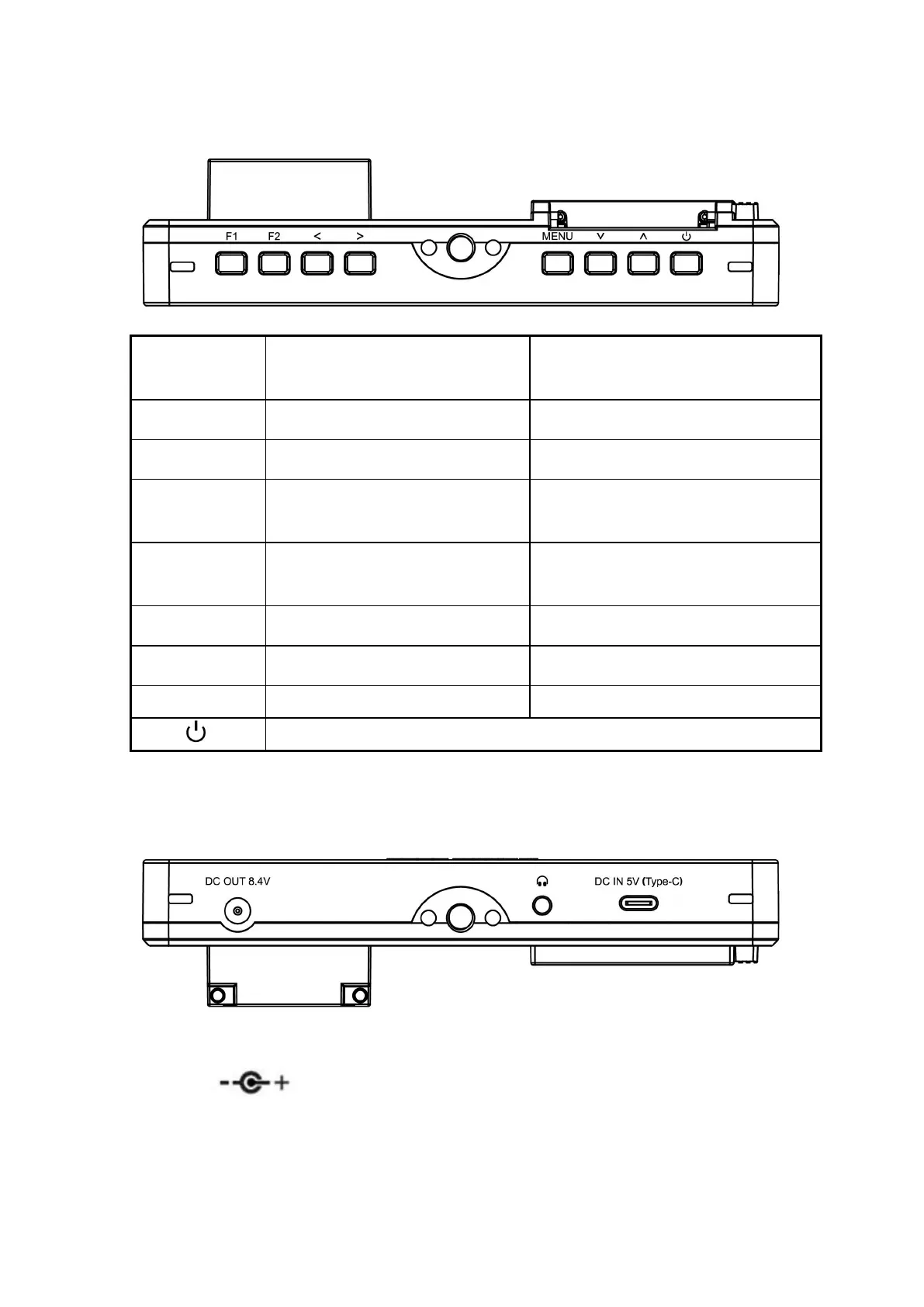 DC OUT 8.4V: DC power output interface, polarity as the output