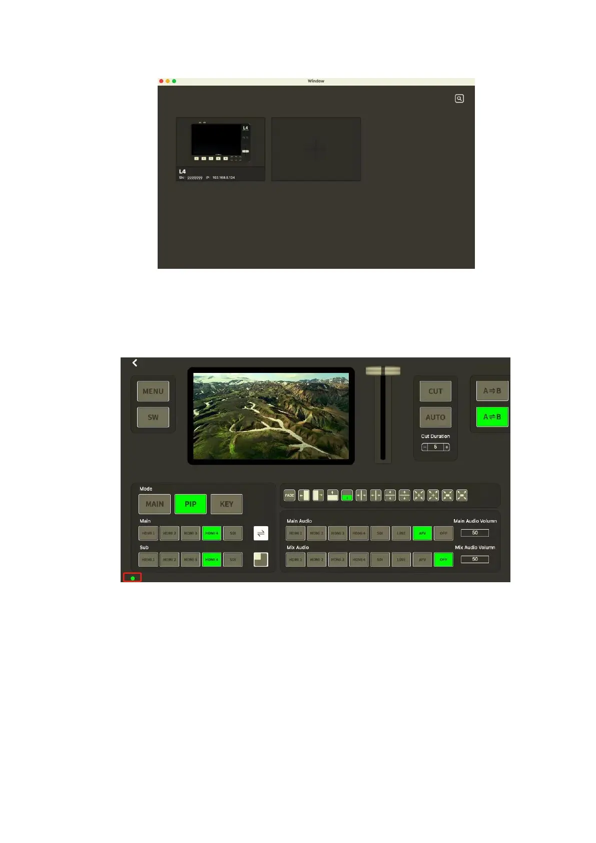 is successful, the indicator light in the lower left corner displays green, and if the connection