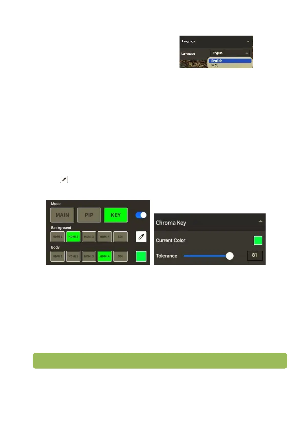 Click KEY of【MODE】, choose the signal source of Background and Body