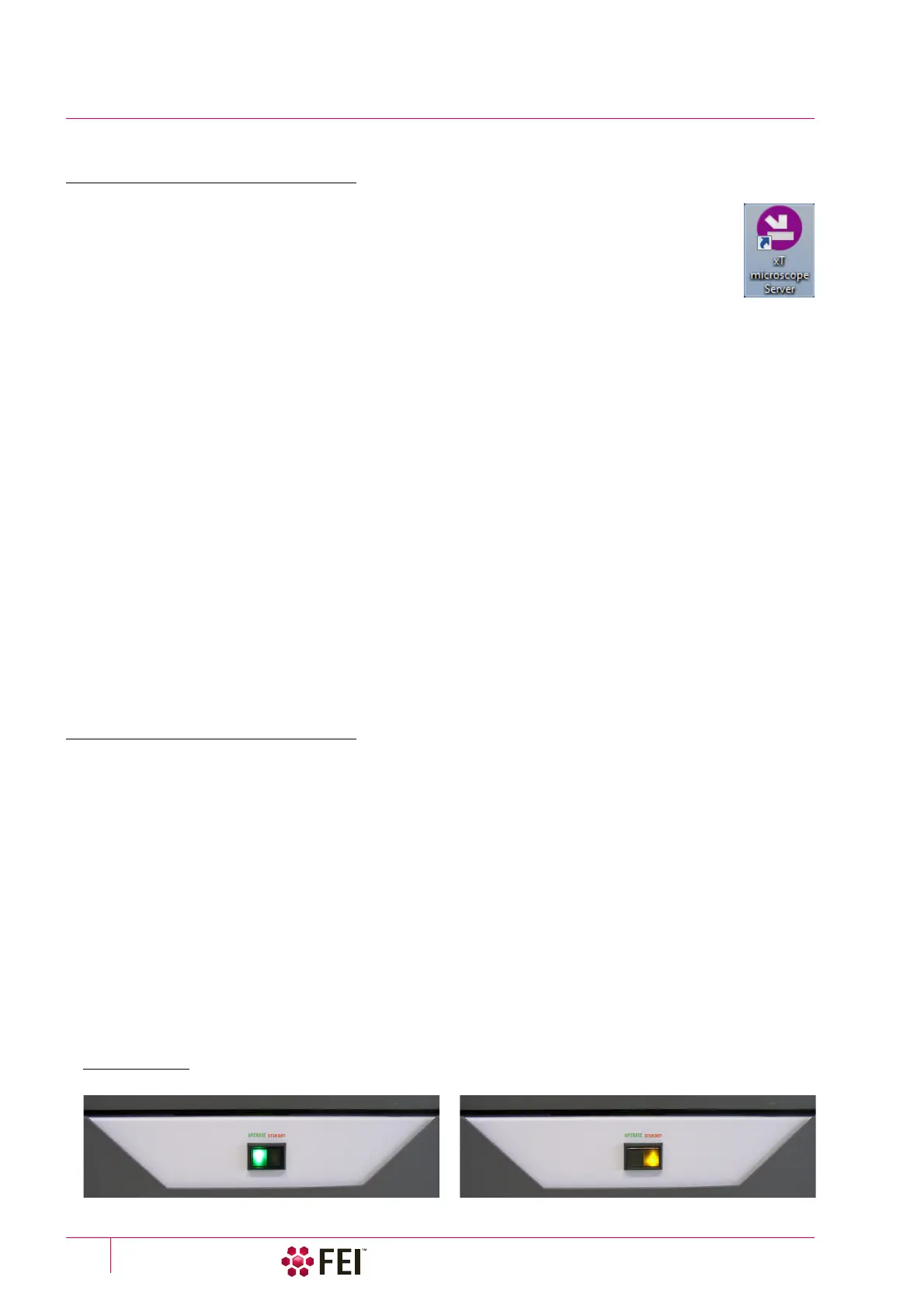panel. This switches the sub-systems on and allows the interface and communication with the Microscope PC,