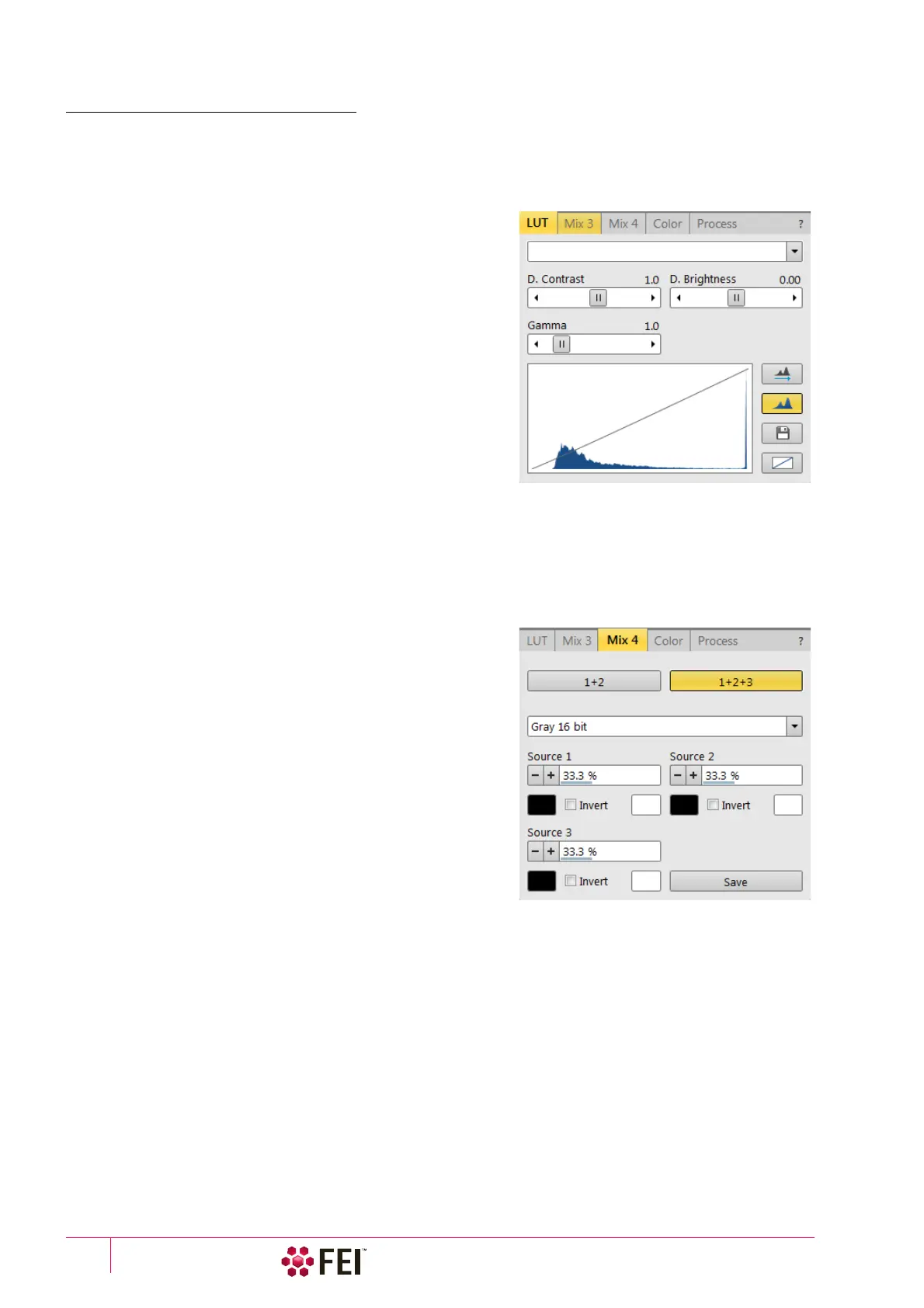 Brightness and Gamma to optimize actual imaging.
