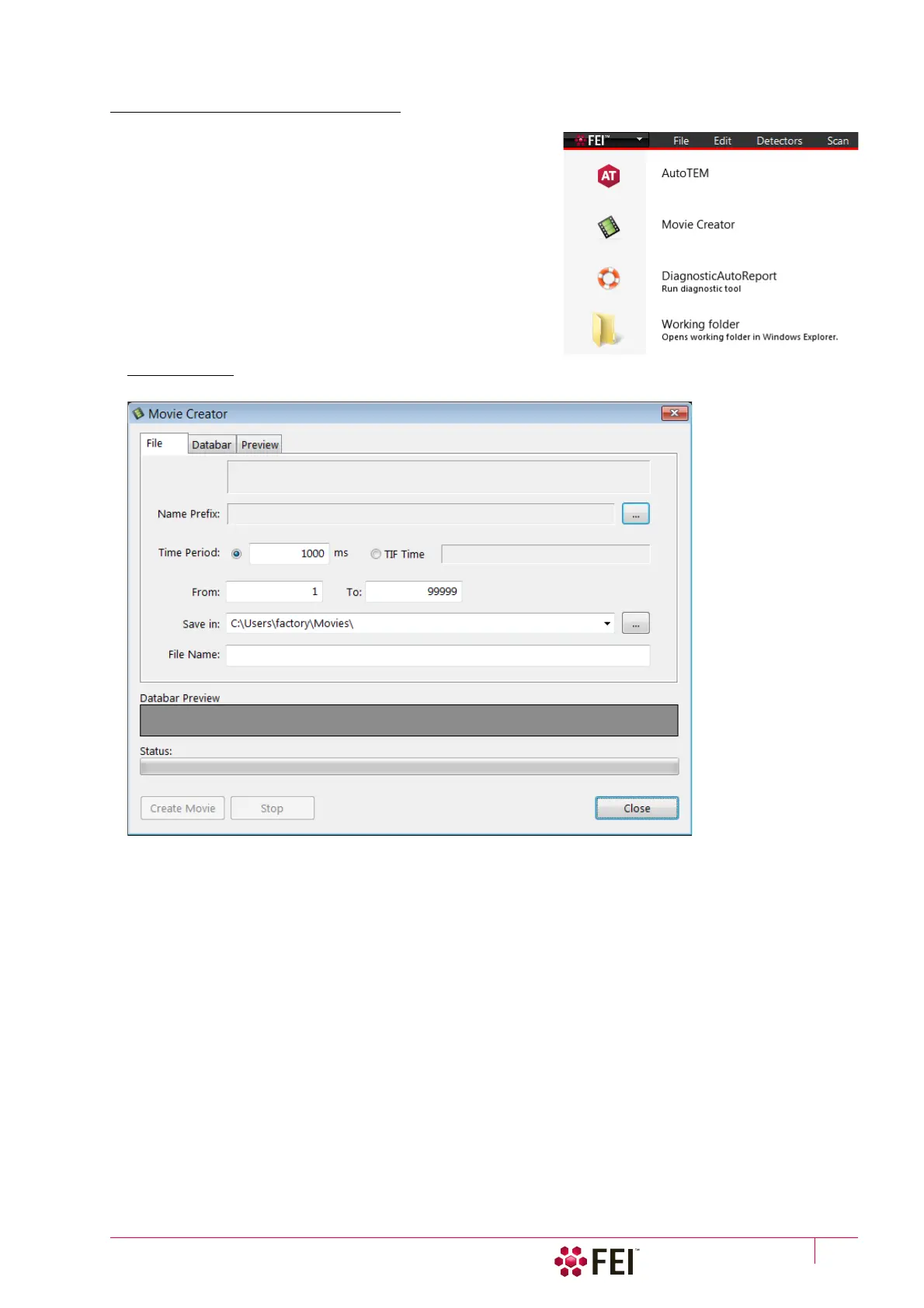from a sequence of TIF images. Click on the FEI menu / Movie