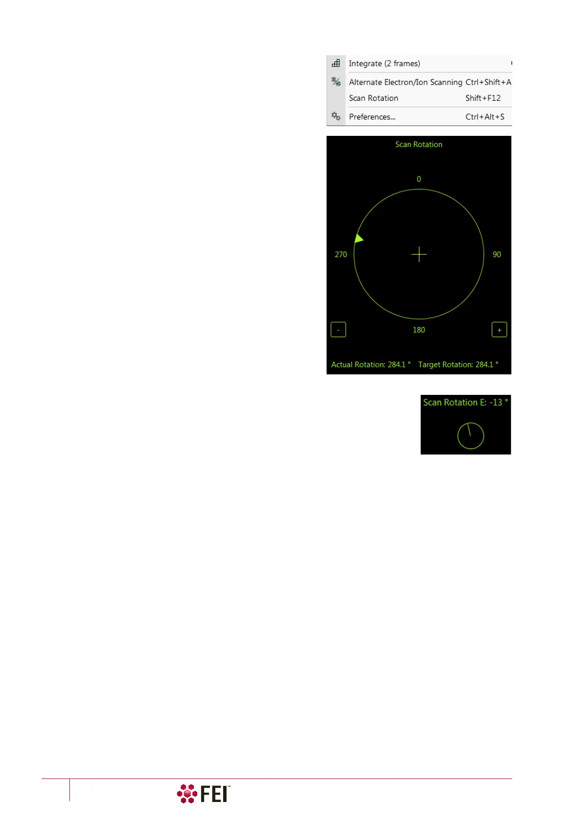 Clicking on the Scan menu / Scan Rotation places a green circle in