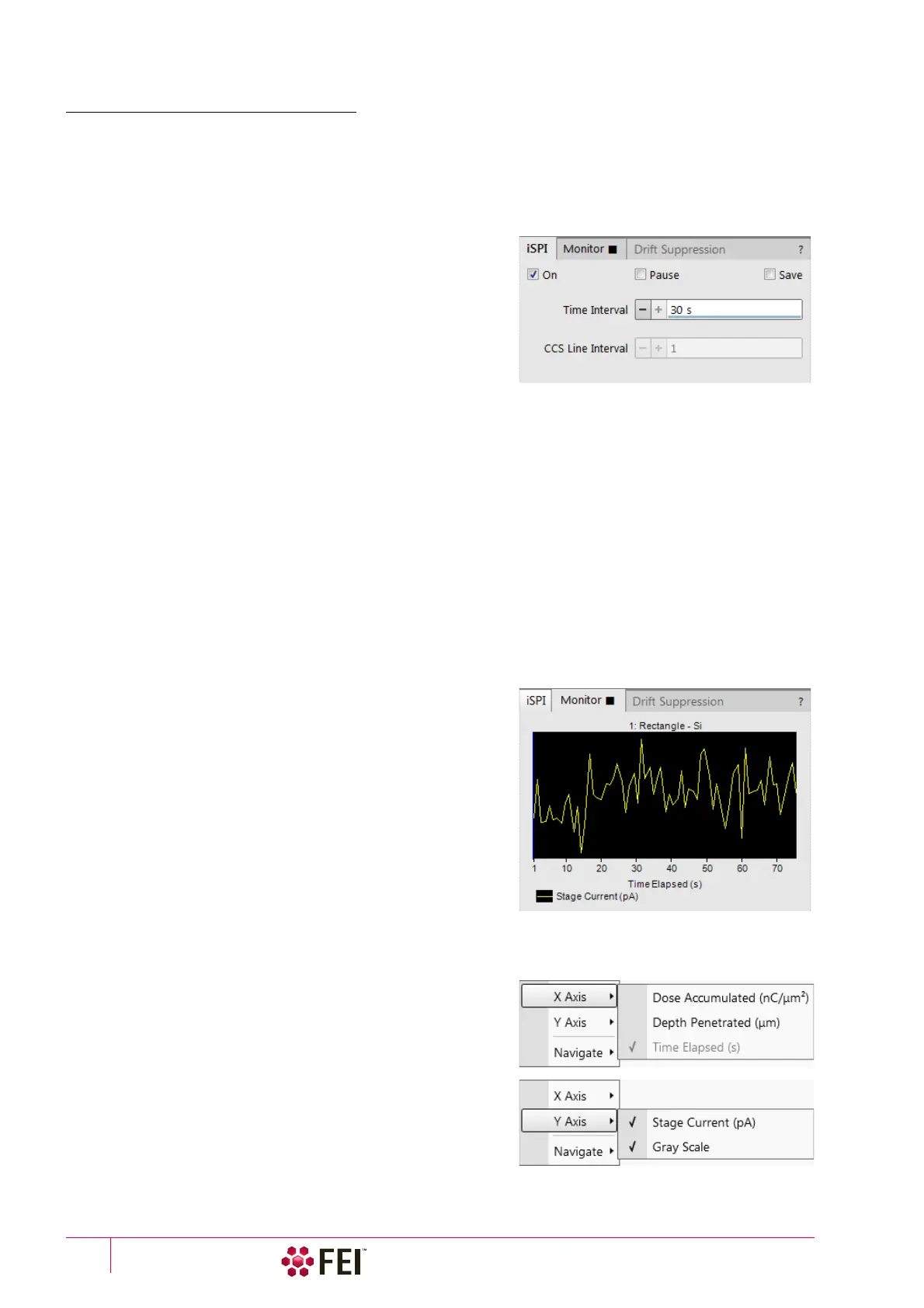 • Pause check box – when ticked it pauses the patterning process after each electron image acquisition according