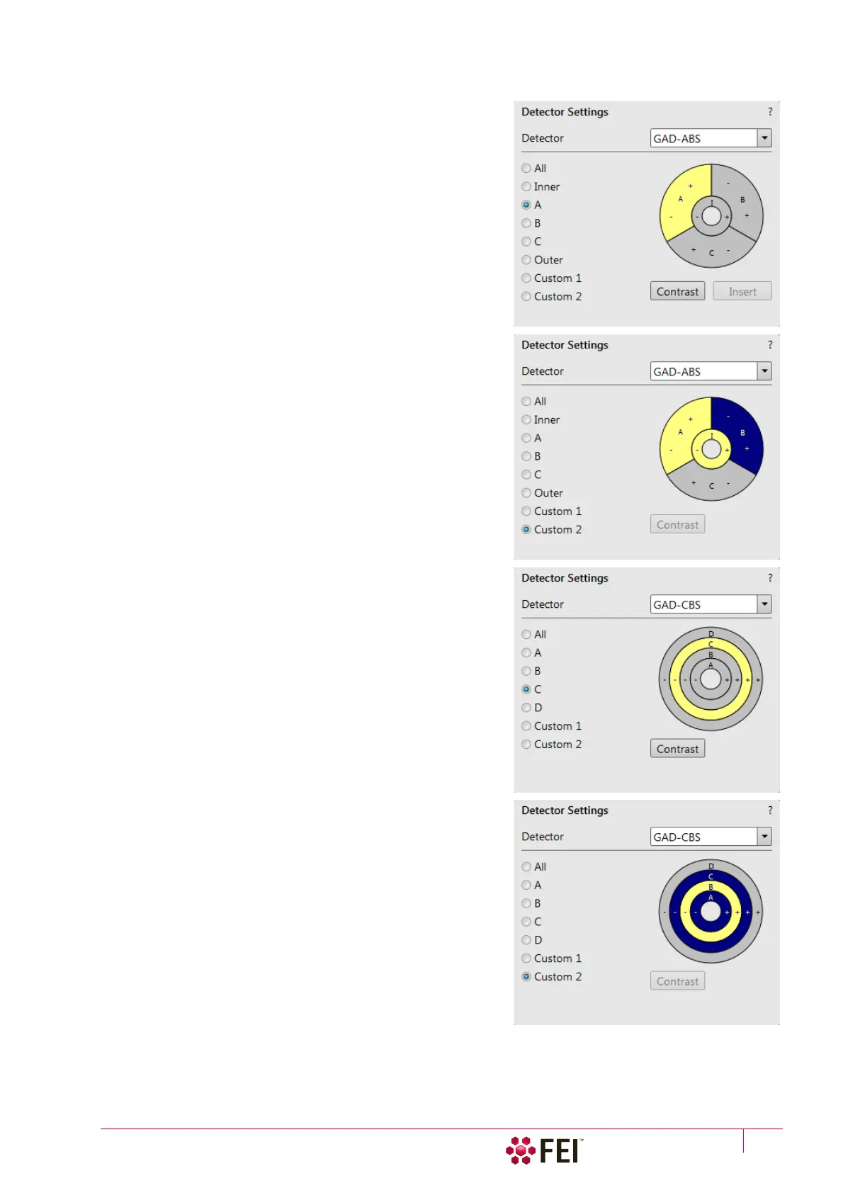 • The Contrast button equalizes signals (contrast) from different