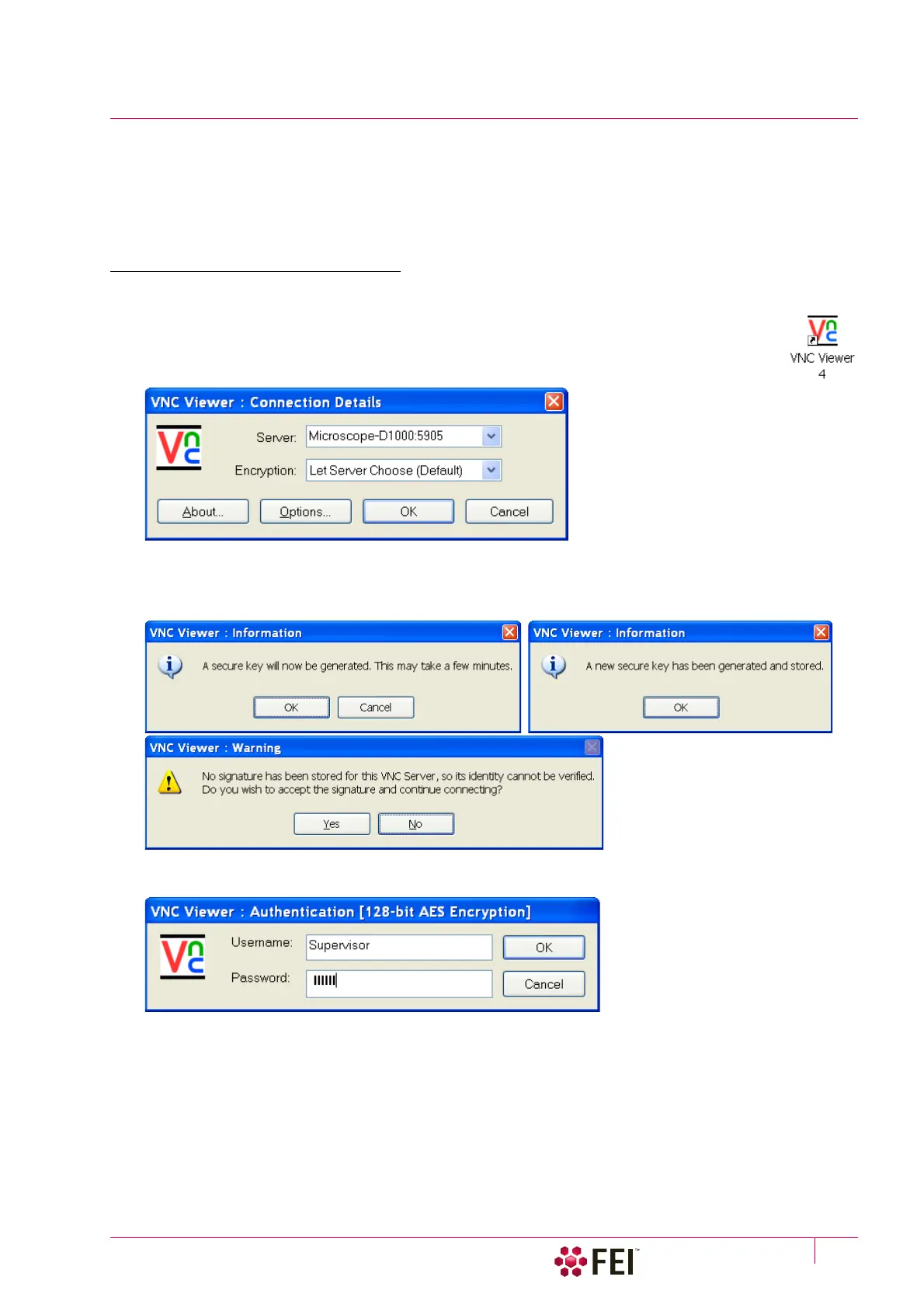 When this step successfully passes, you are connected to the Microscope PC and the VNC window with its