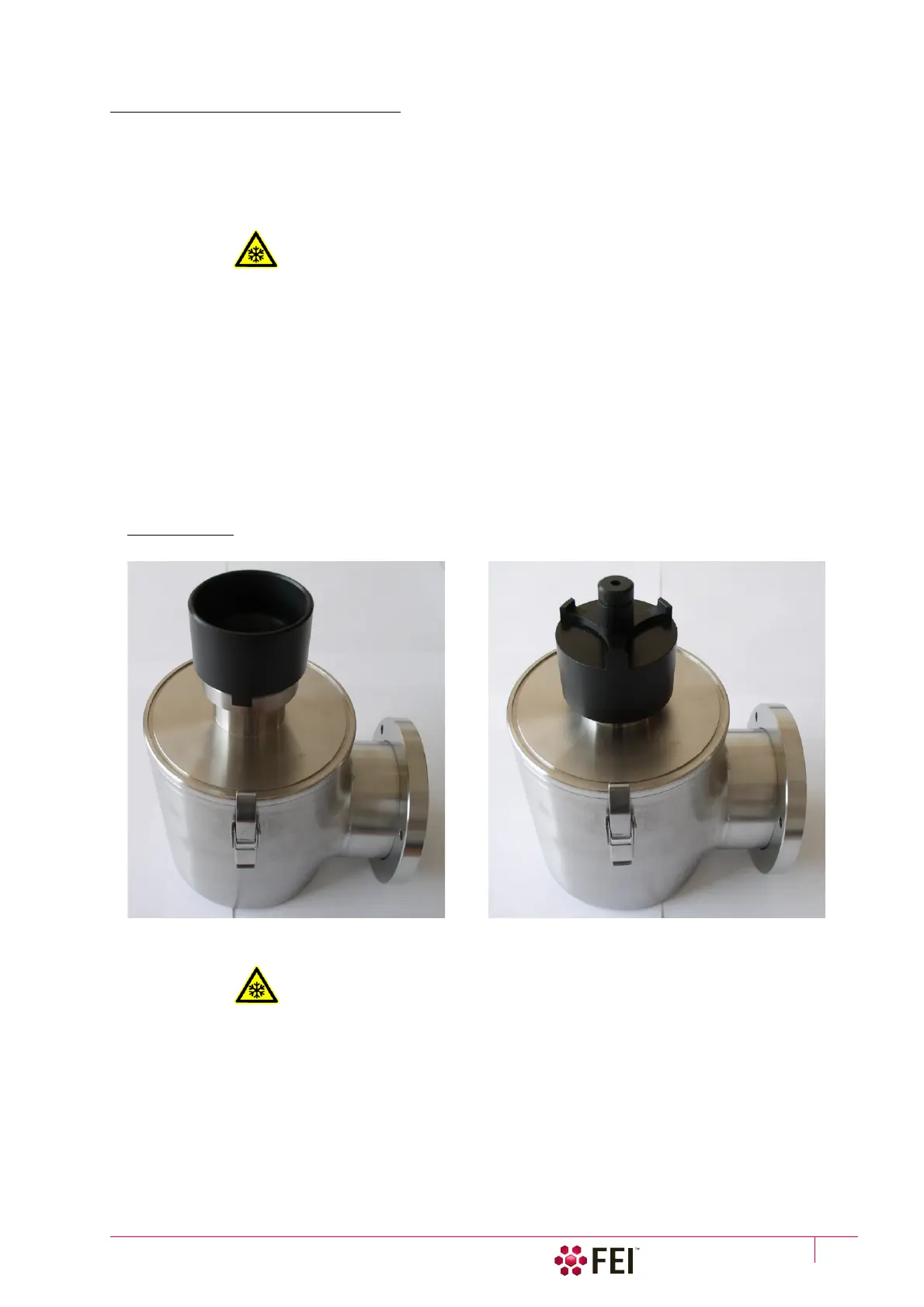 Users must not touch the cold surfaces of the Dewar as this can result in burns. Use the Safety Pliers provided, when