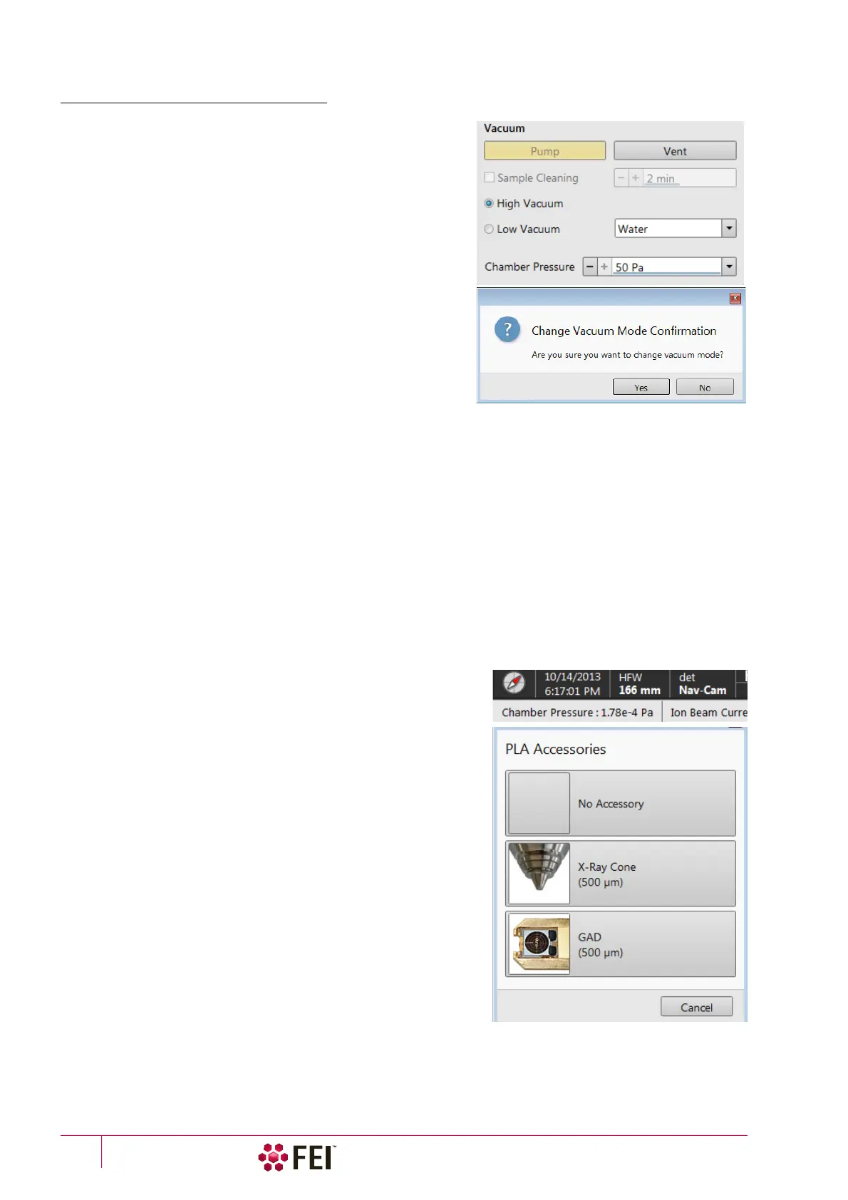 The Vacuum module / High Vacuum or Low Vacuum radio buttons