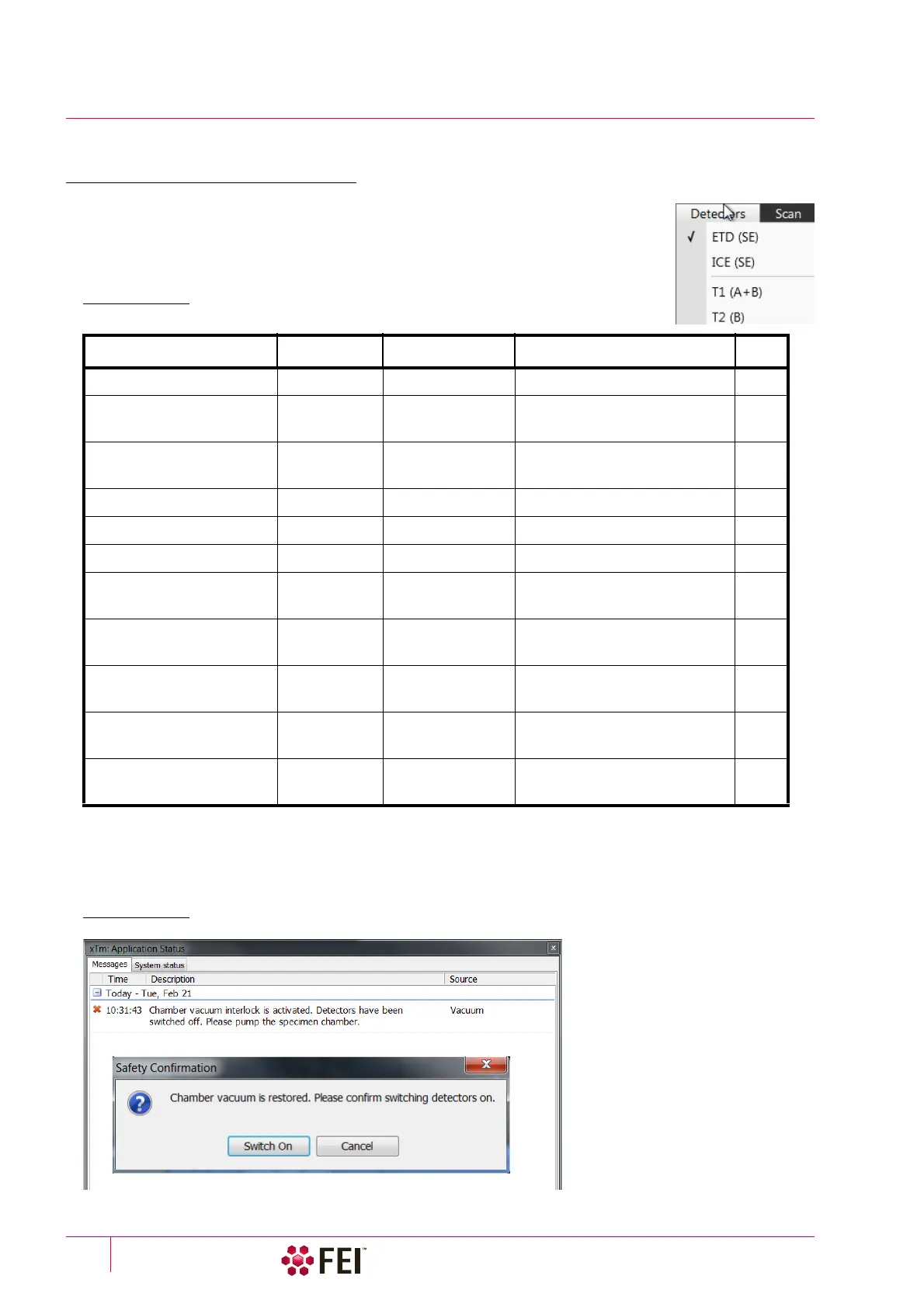 In case the vacuum safety interlock is activated, the confirmation of switching the detector voltage on after pumping the