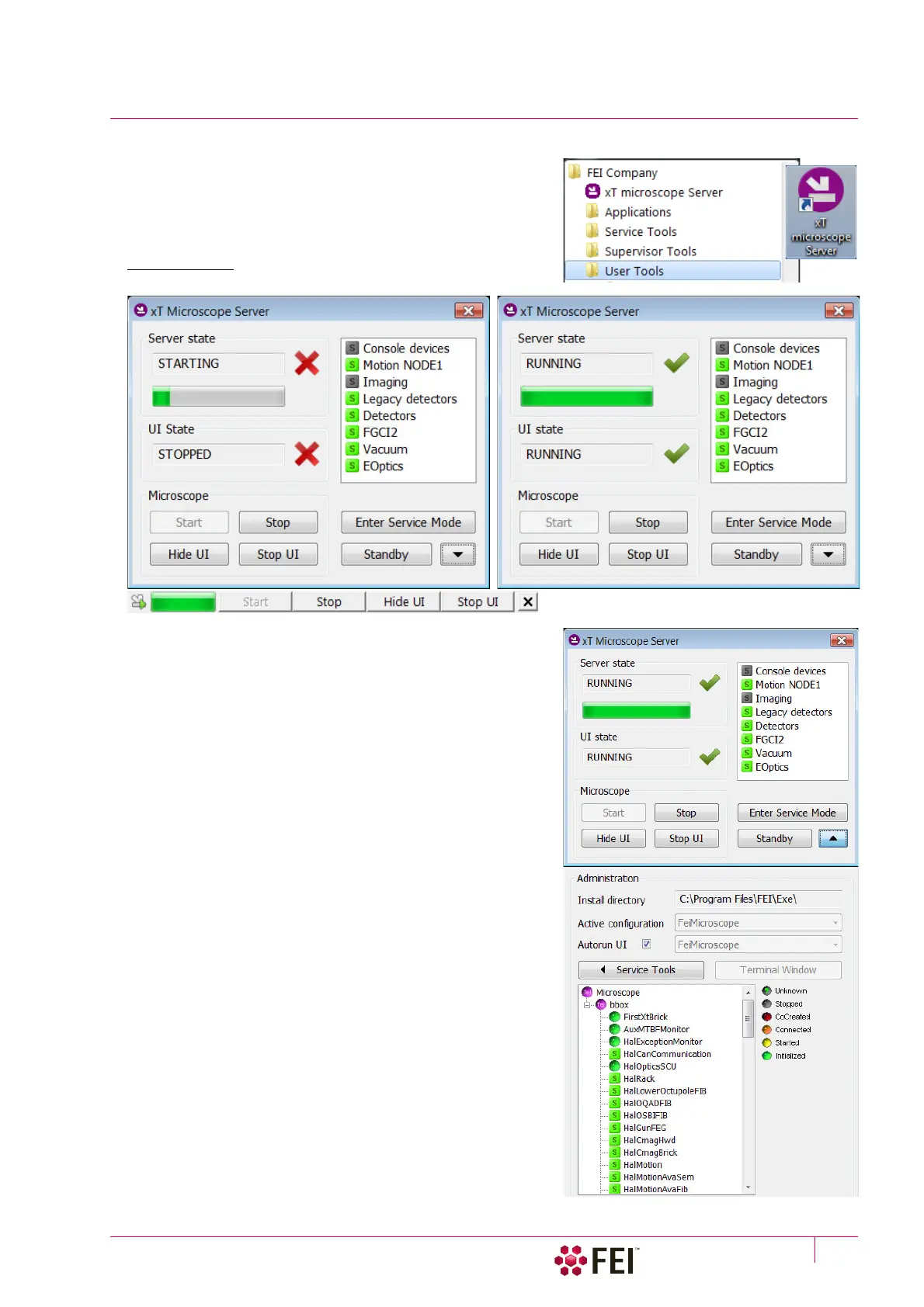 / STOPPING / STOPPED state of the xT microscope Server /