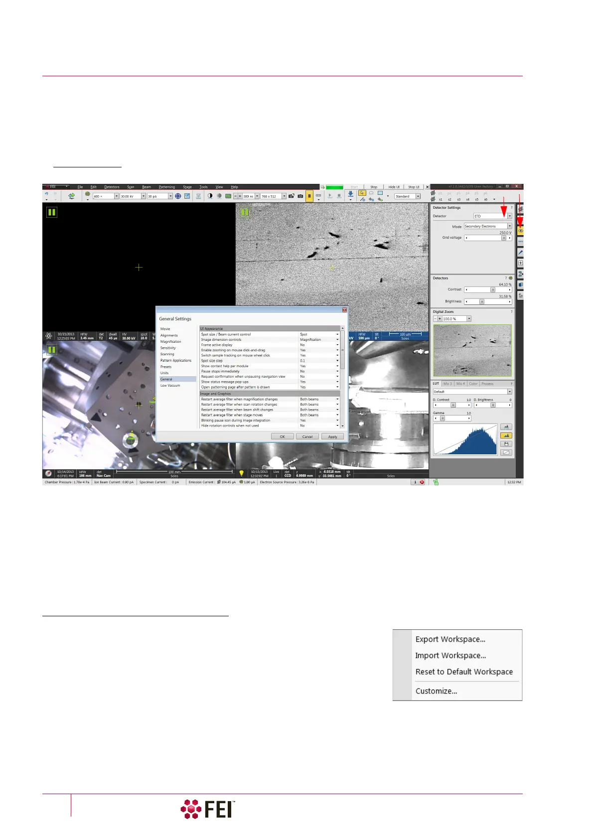 The Microscope Control software – simply User Interface (UI) – is made up of several elements which compose the