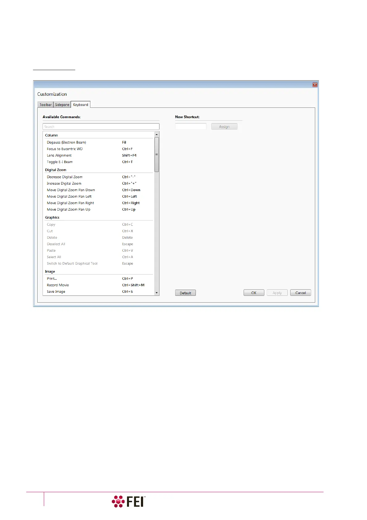 functionality, enter a New Shortcut to the edit field and click the Assign button. To revert to the factory setting click