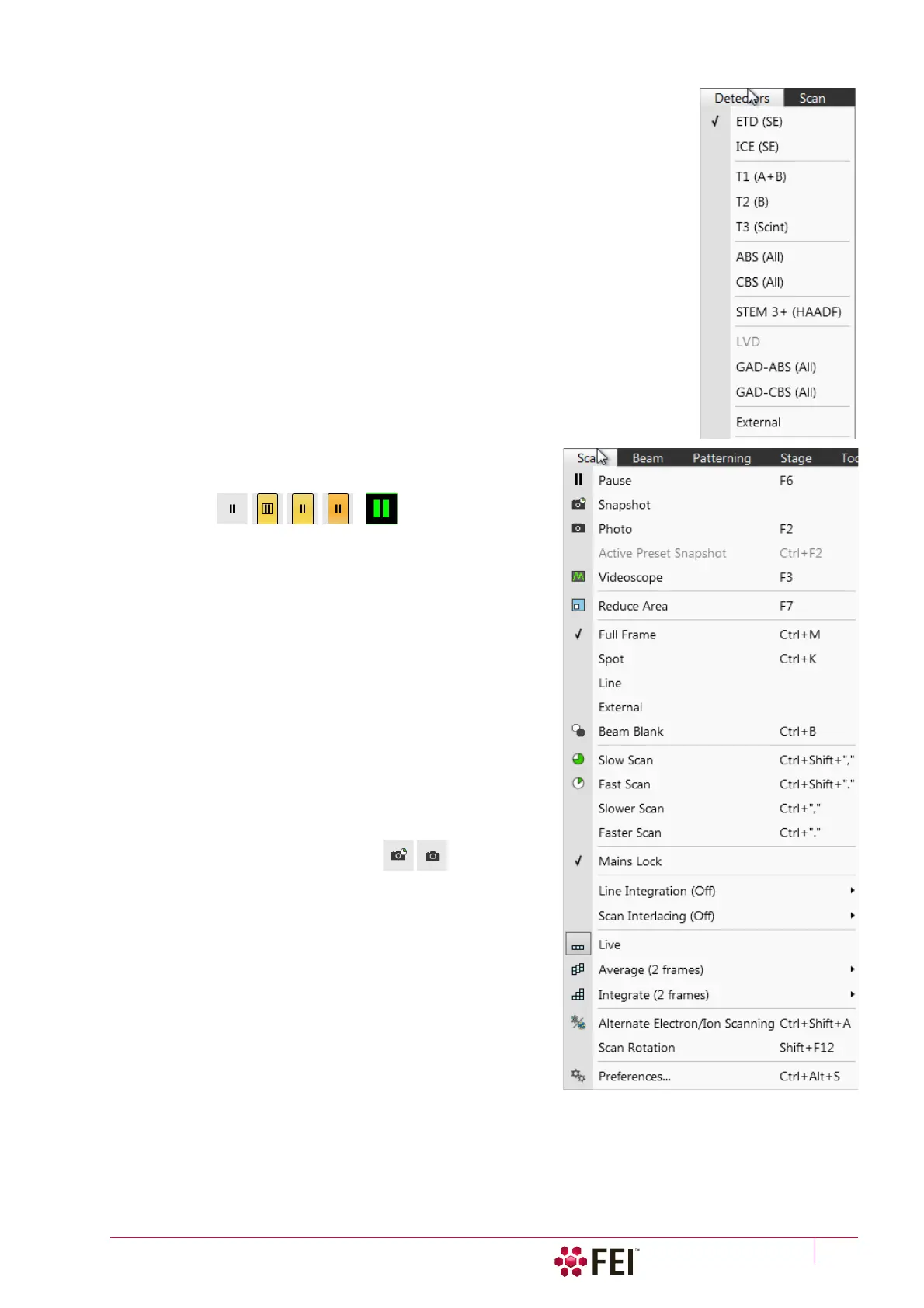 Select the Scan menu / Pause or press the F6 button or click on /