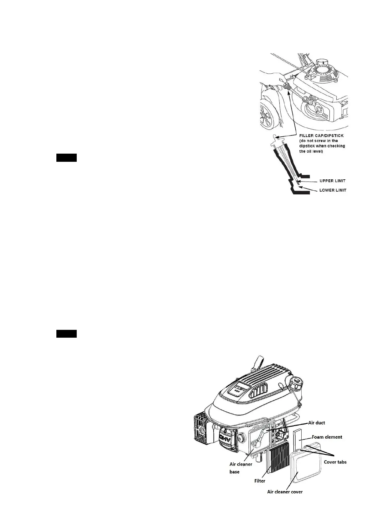 NOTICE: Running the engine with a low oil level will cause engine