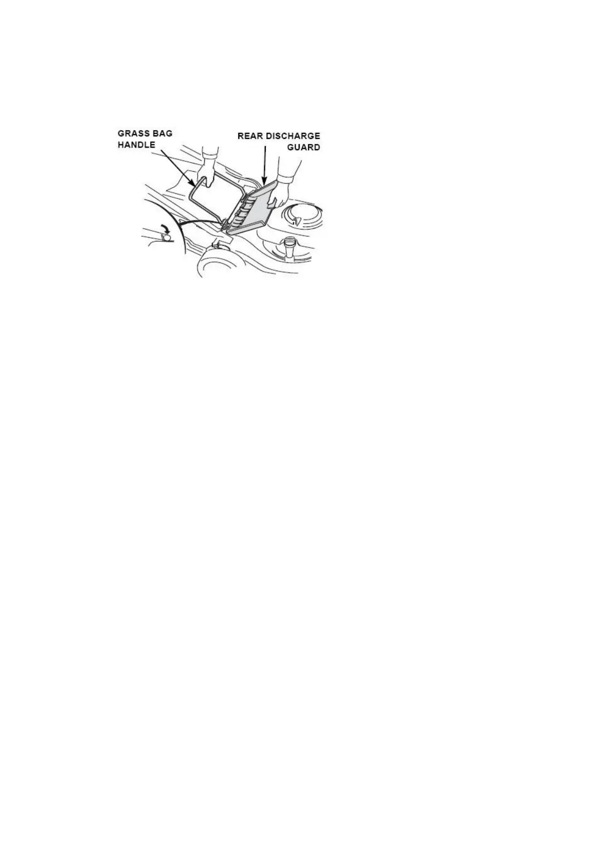 To remove the grass bag, lift the rear discharge guard and remove the grass bag.