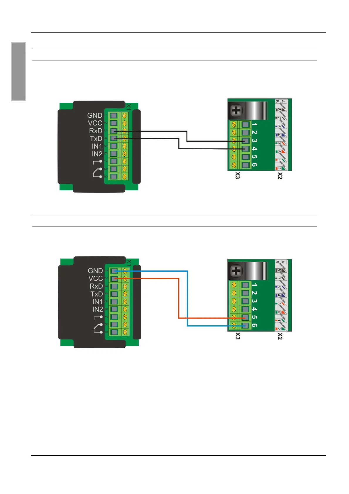 ID MAX50.10-E über die Anschlüsse VCC (+) und GND (-).