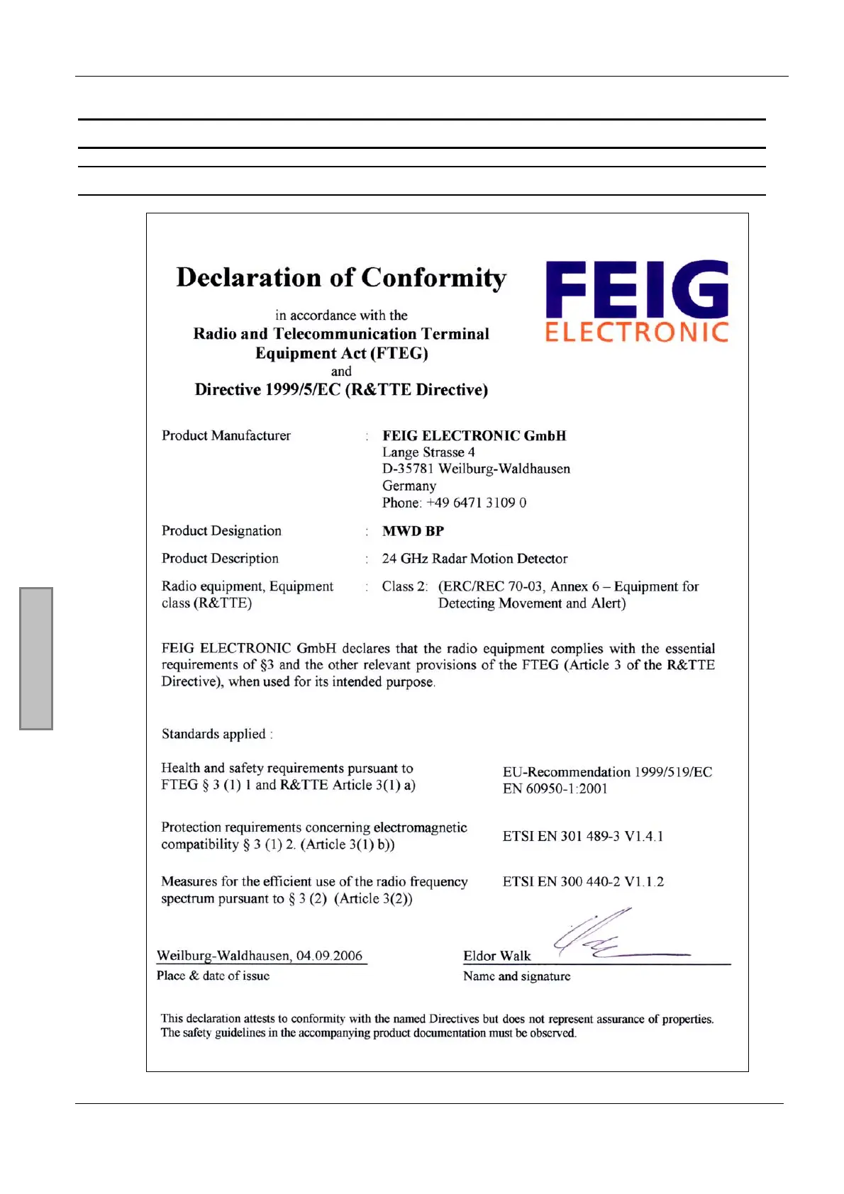 Feig Electronic MWD BP - 4 Omologazioni; Europa (CE)