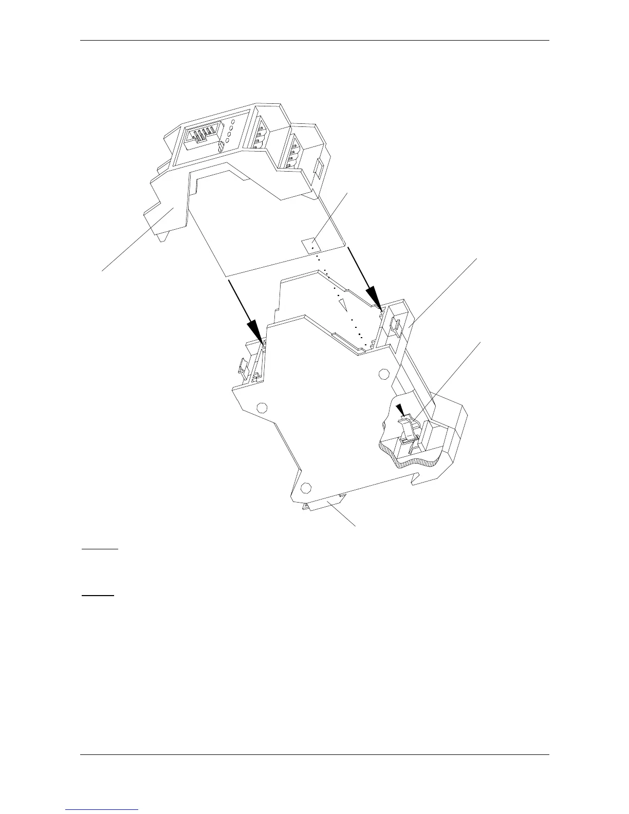 - Loosen upper section A by gently pressing with a screwdriver on the side springs at B.