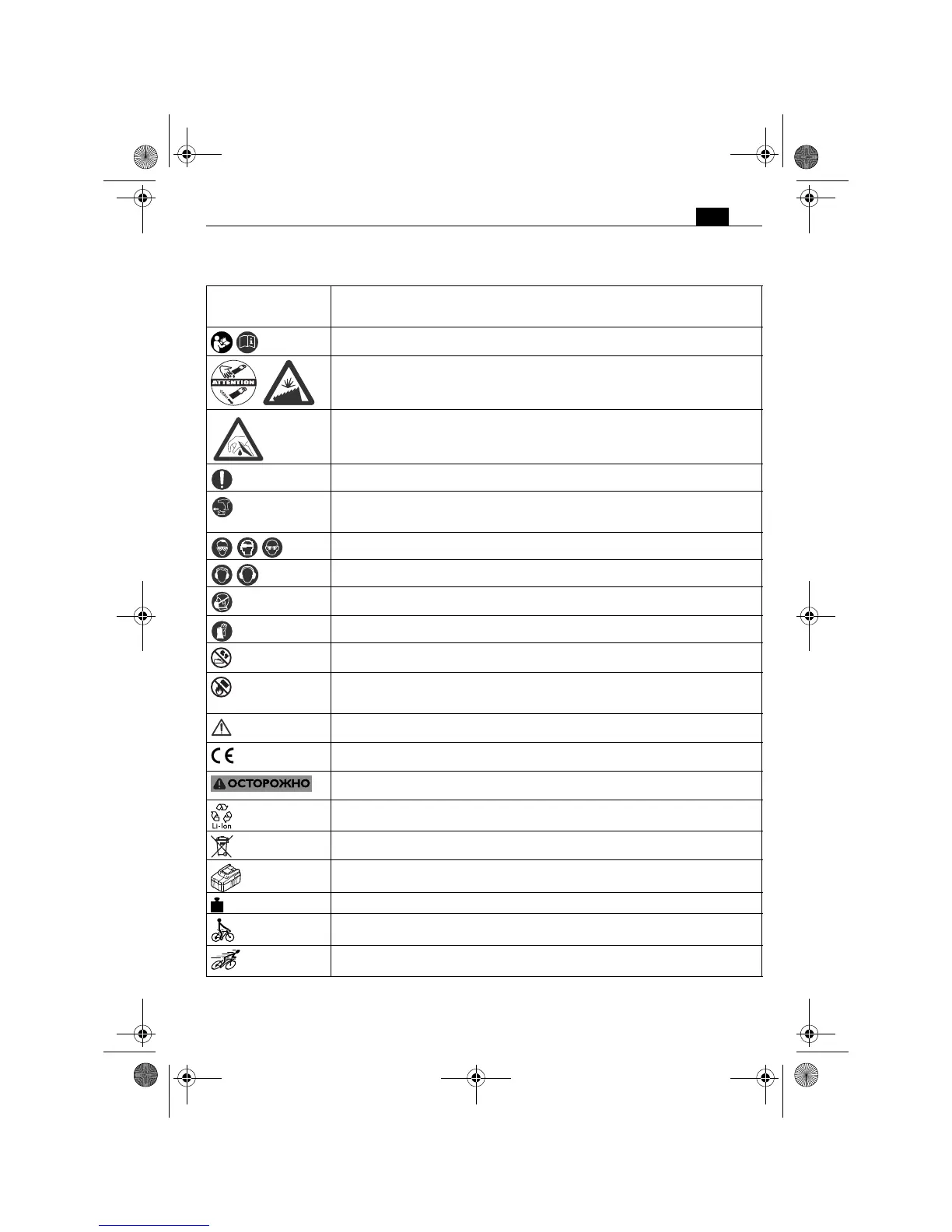 Предупреждение касательно острых кромок рабочих инструментов, как напр.,