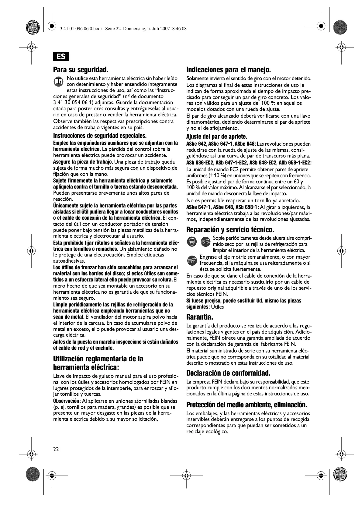 con la declaración de garantía del fabricante FEIN.