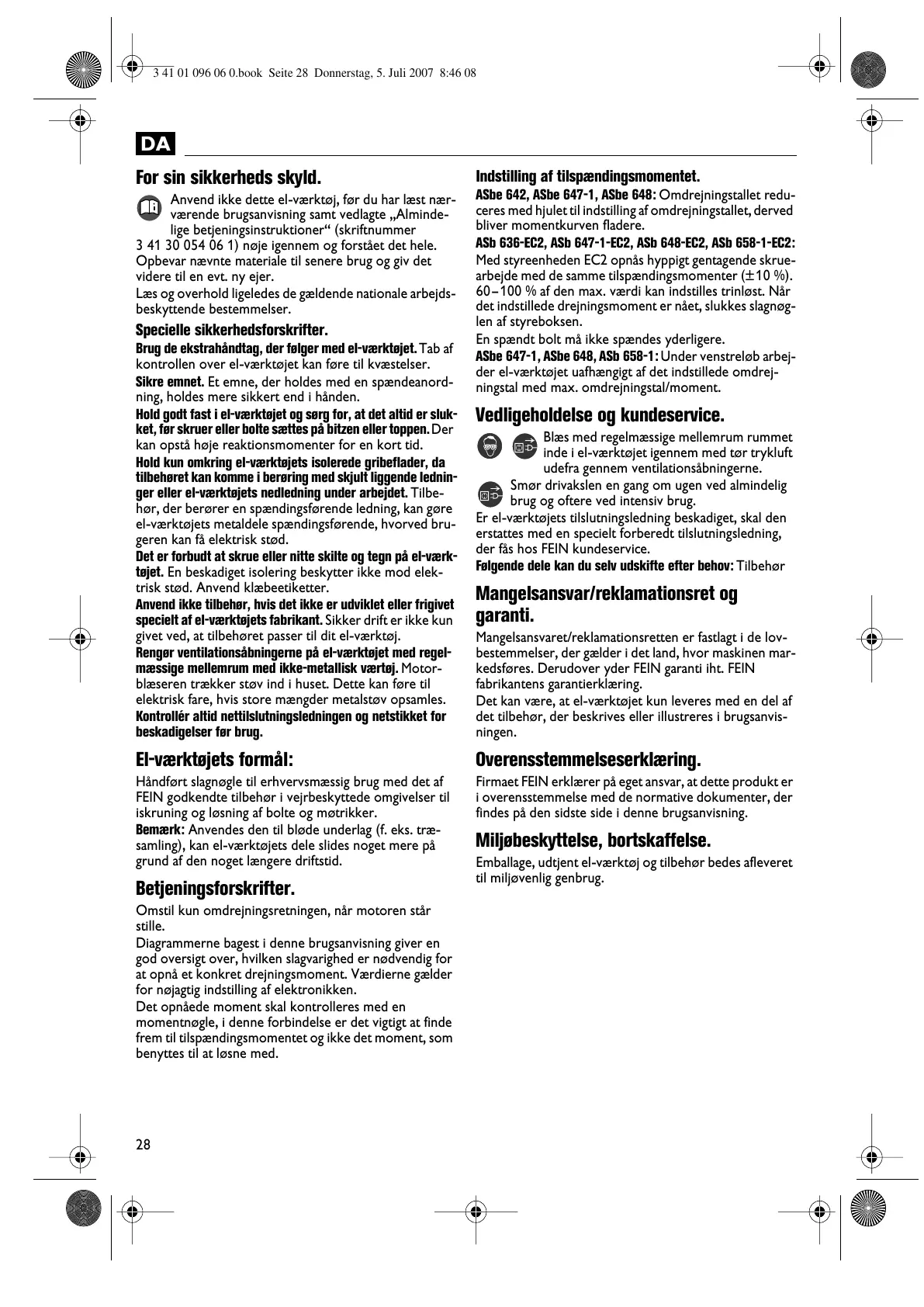 kedsføres. Derudover yder FEIN garanti iht. FEIN