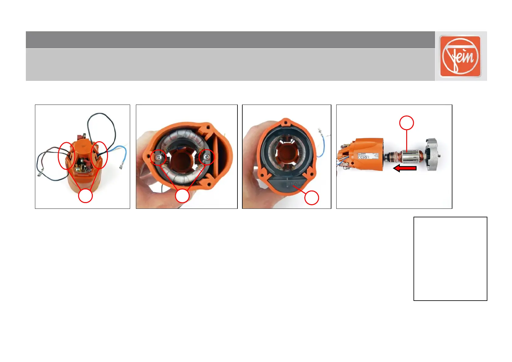 2. Use the two screws (2) to fasten the stator [1 Nm +0.4 Nm].