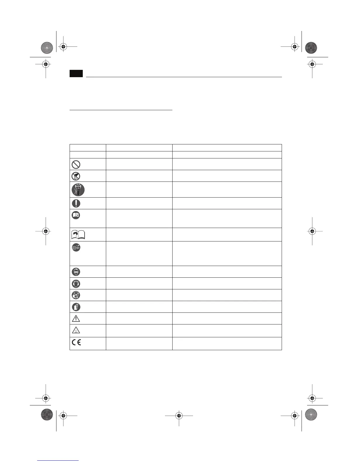 Touching prohibited Do not touch the rotating parts of the power tool.