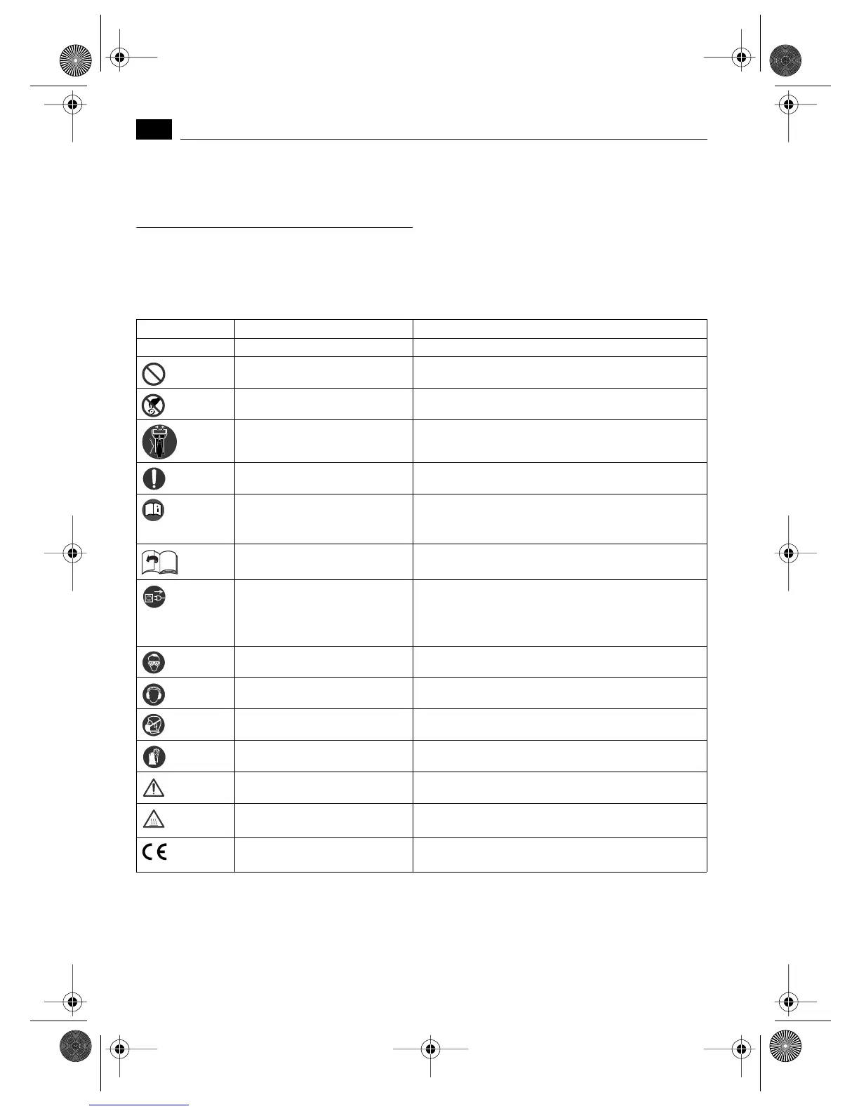 Touching prohibited Do not touch the rotating parts of the power tool.