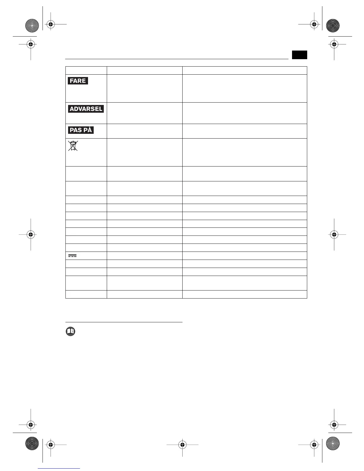 mærket med FARE, ADVARSEL og PAS PÅ).