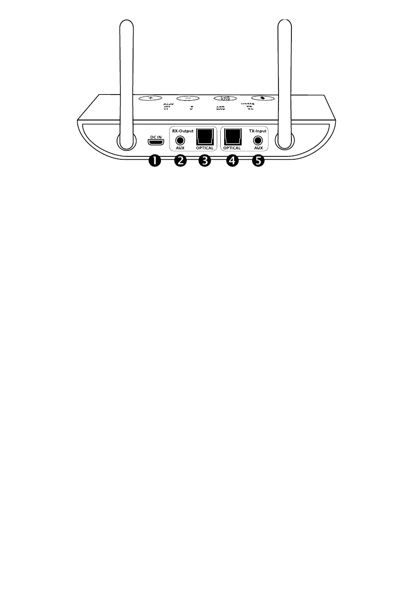 Schieben Sie den Modus-Schalter 9 auf RX. Drücken Sie dann die Bluetooth-Taste doppelt, um in den Kopplungsmodus zu gelan-