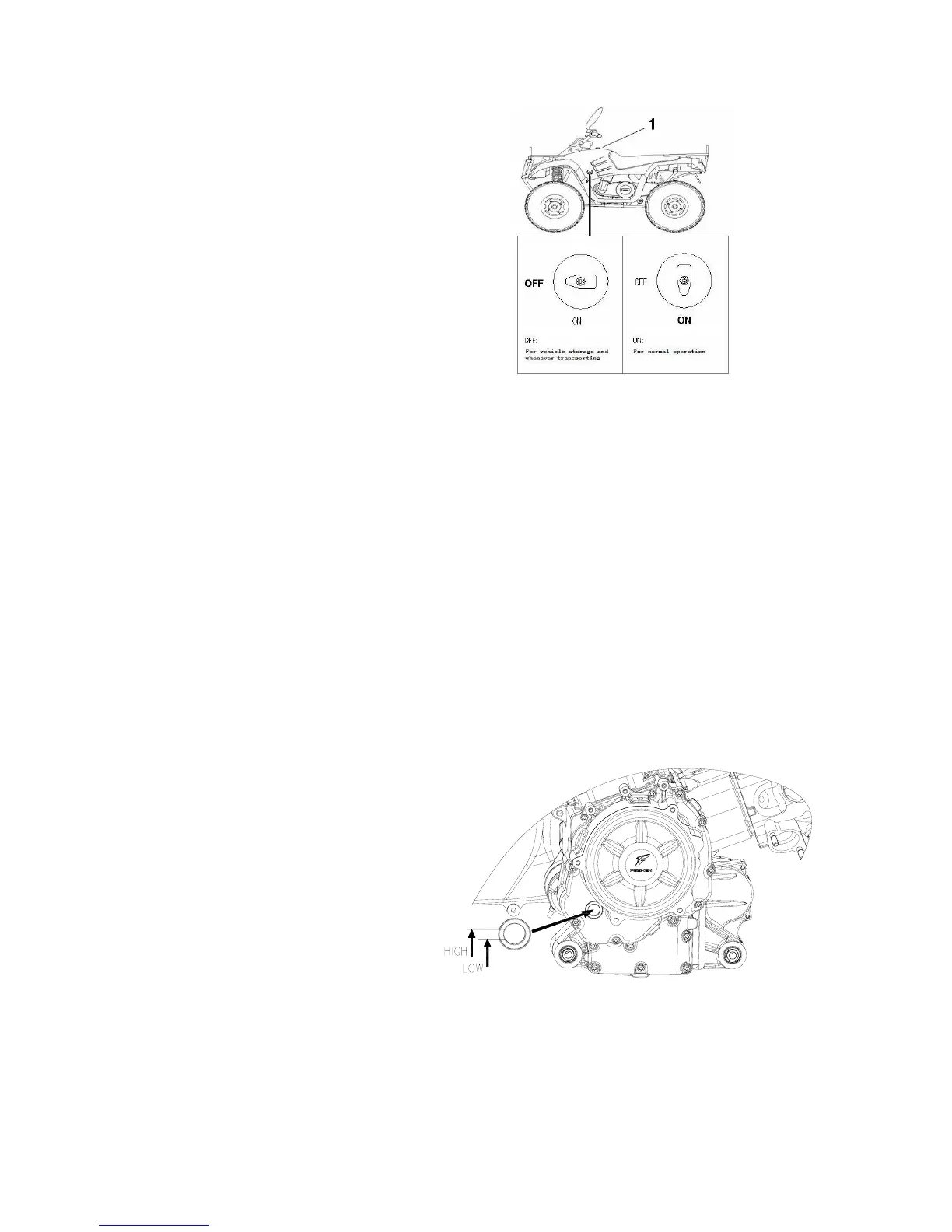 OFF: For vehicle storage and whenever transporting.