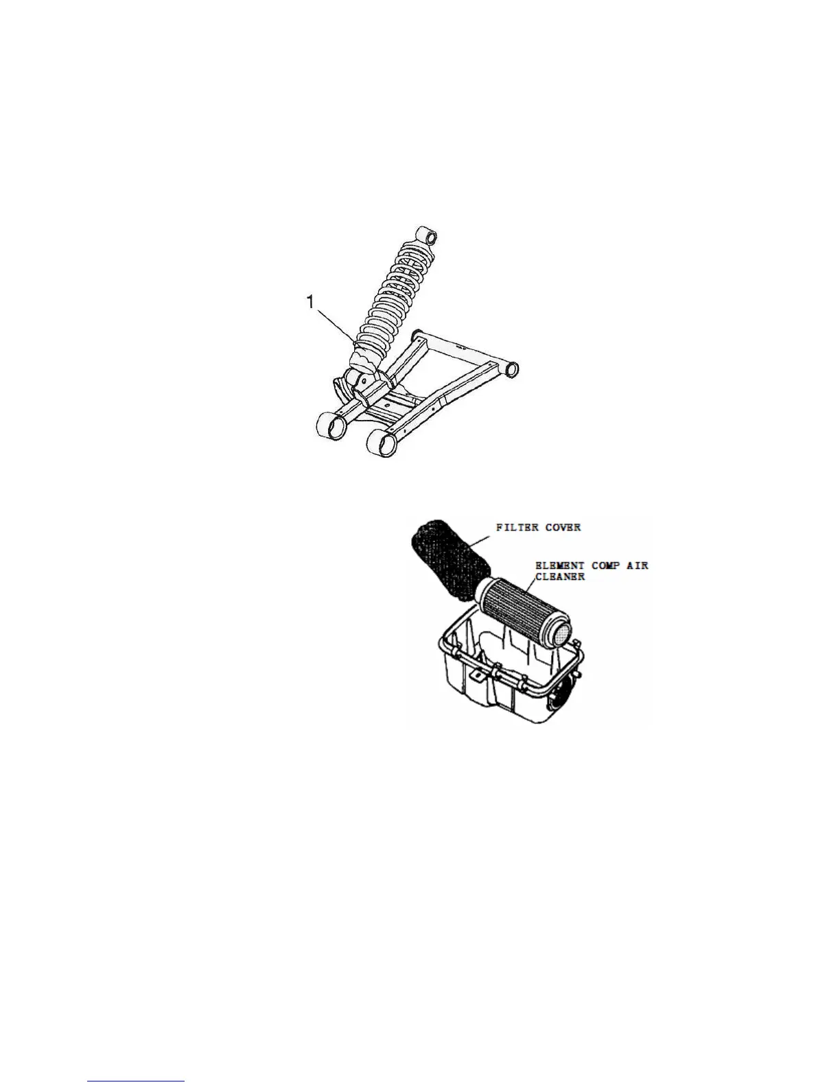 The rear shock absorber spring is adjusted by rotating the adjuster (1) either