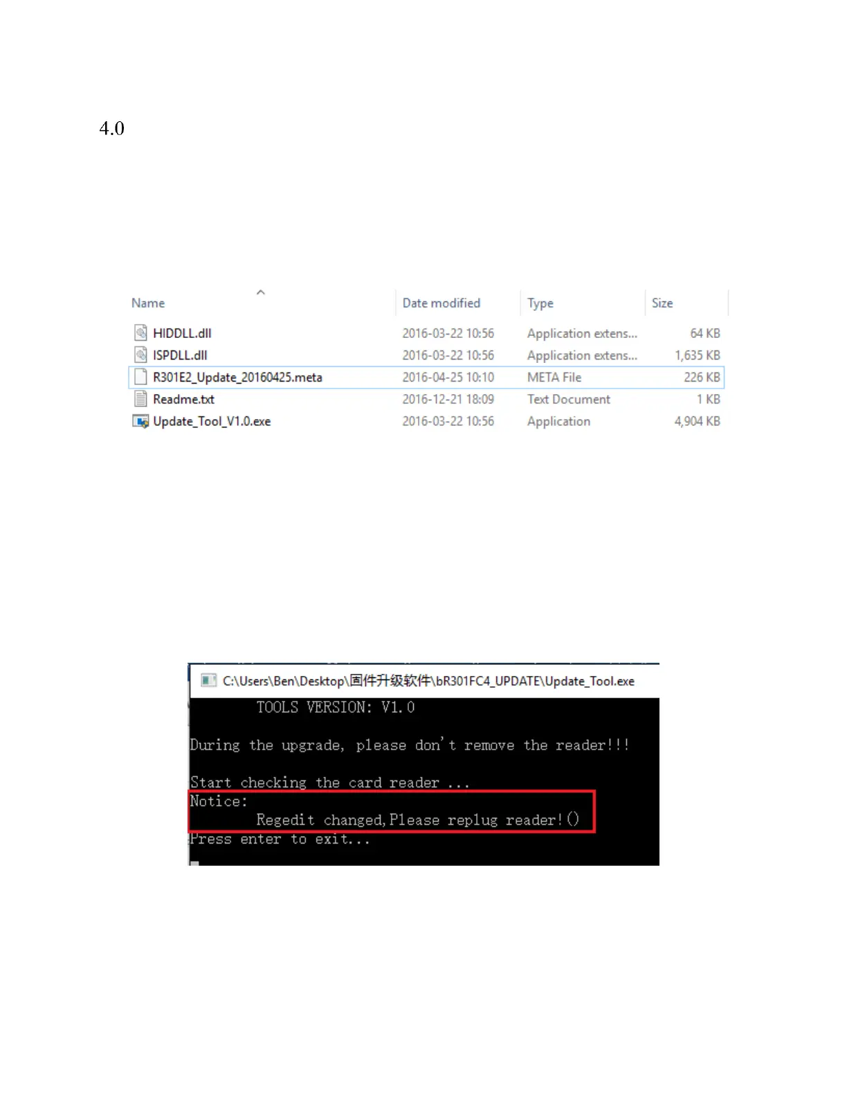 Step #1: Insert reader to PC and double click “Update_Tool.exe” by administrator. If you are first