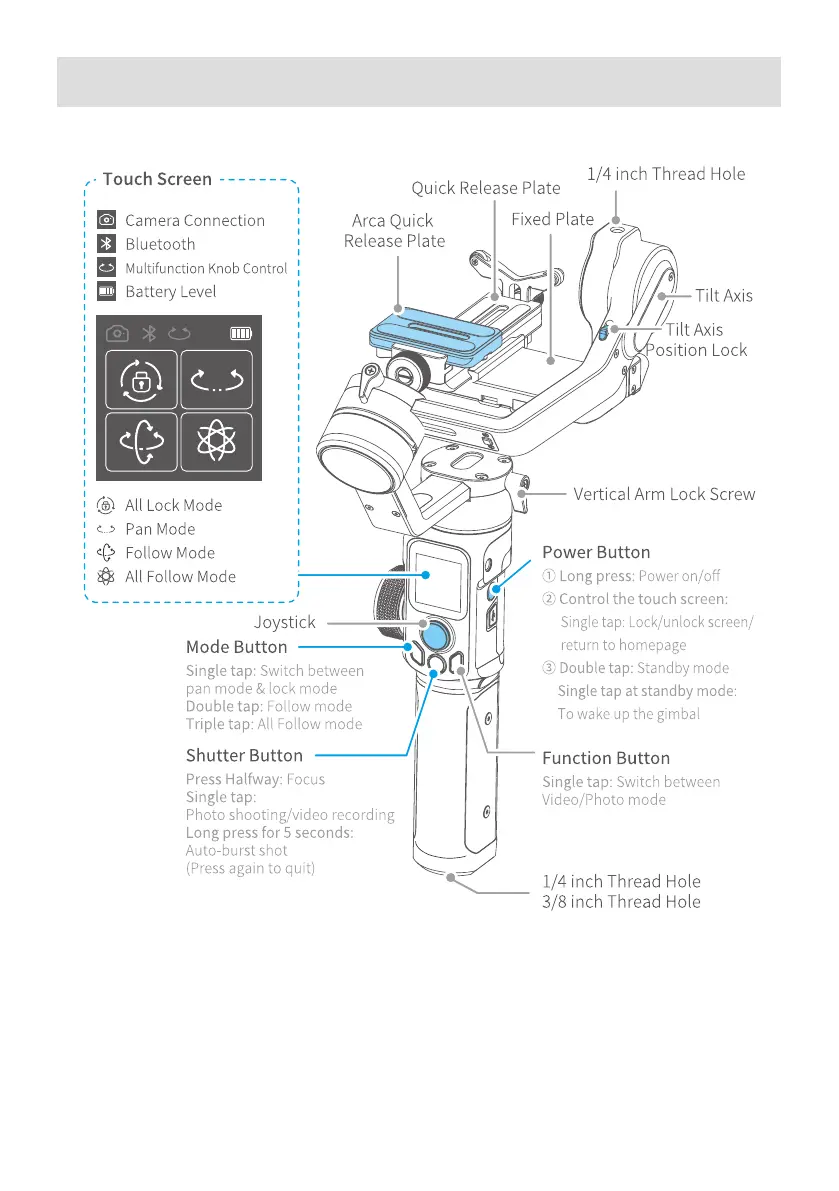 FeiYu Tech AK2000S - 1. Product Overview; Touch Screen Interface; Gimbal Control Buttons