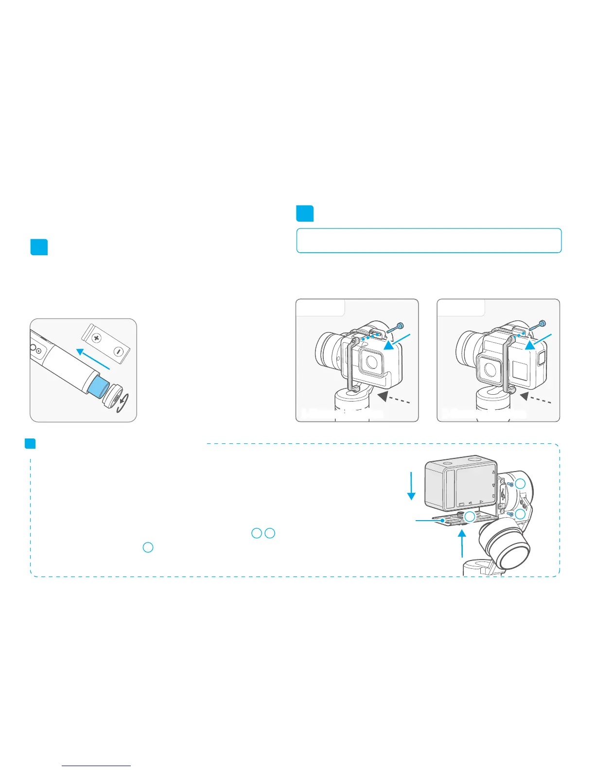 Please mount the camera before power on the gimbal.