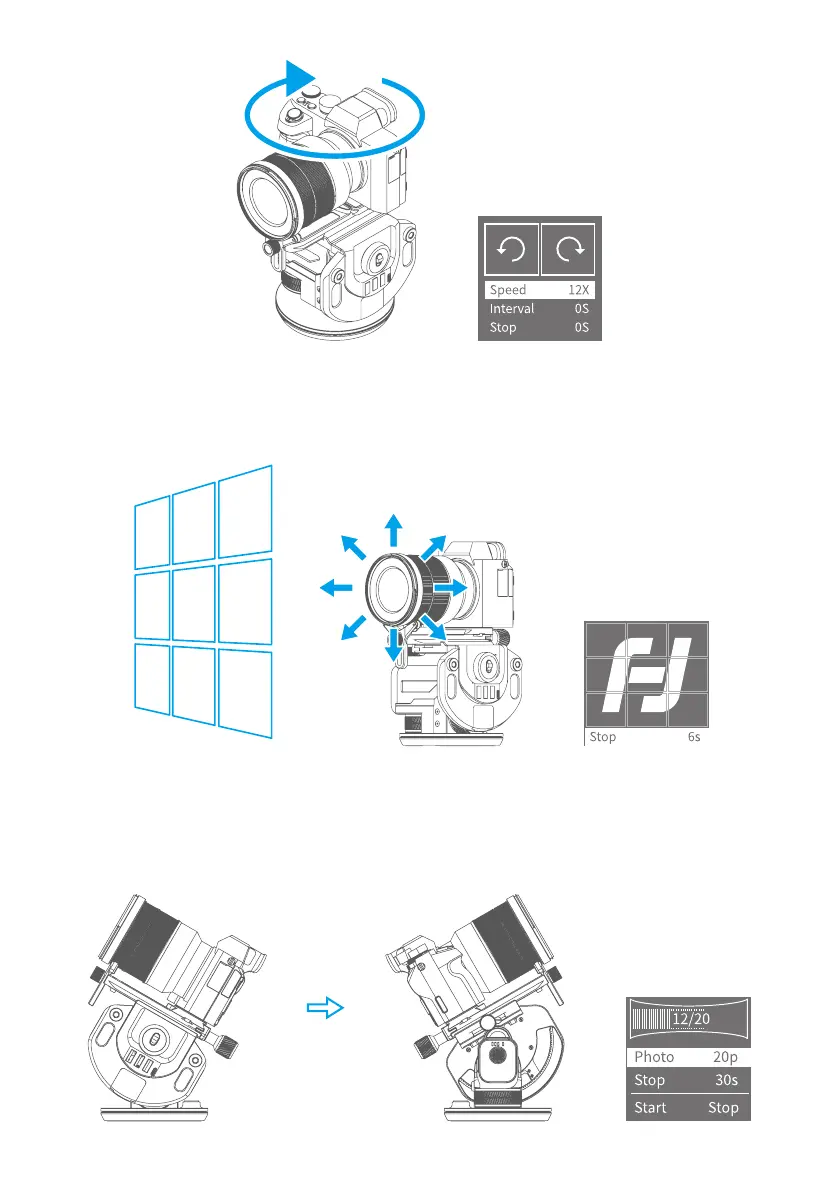 square panorama) can be assemble into 1 picture later on computer or Feiyu ON