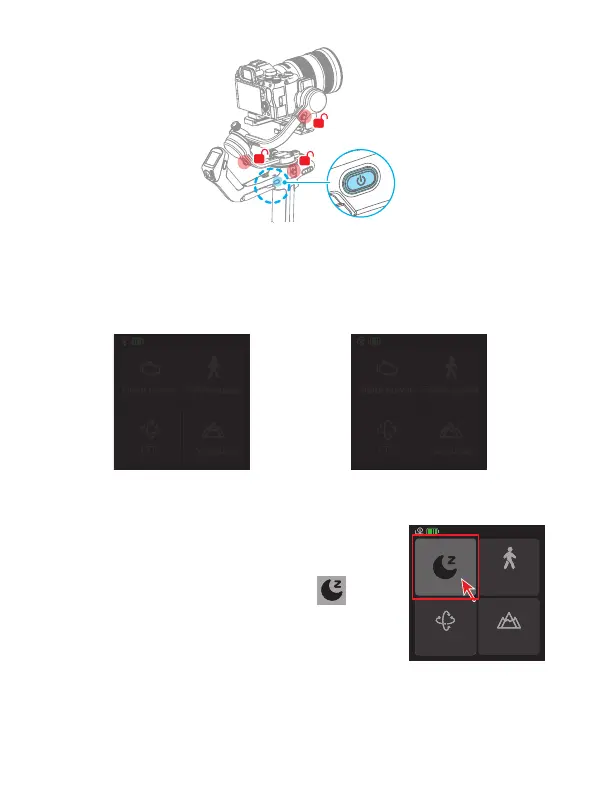 on the screen in sleep mode to wake up gimbal.