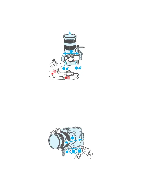 arm ③ to the opposite direction, until the camera is steady pointing upward.