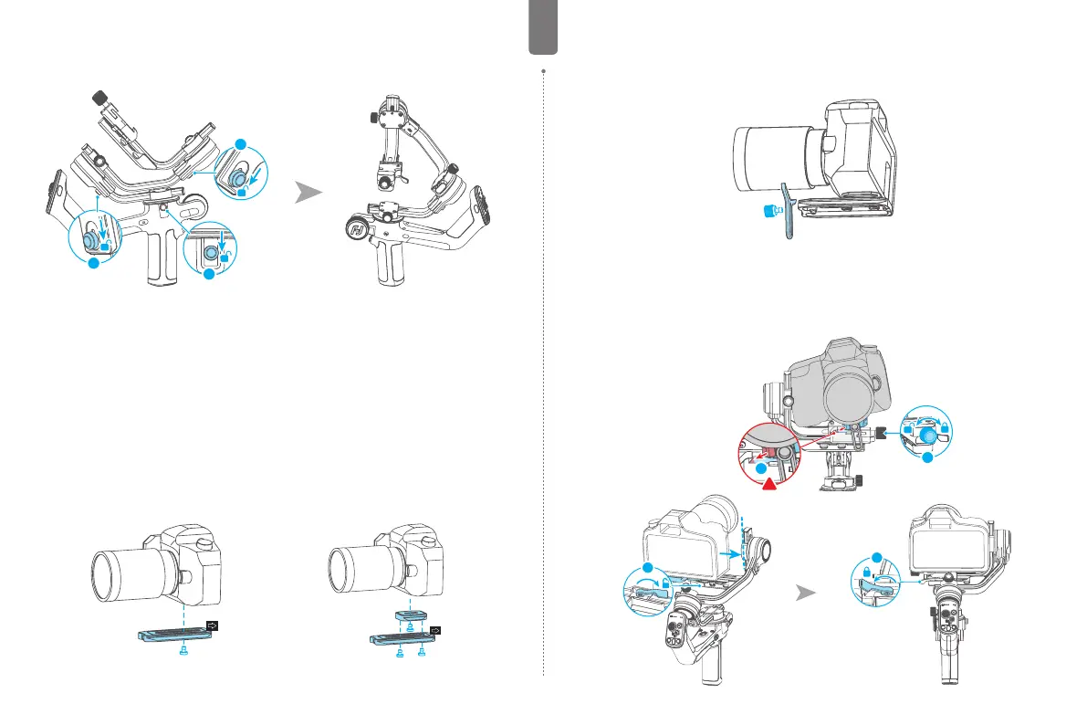 the slot ② in direction of icon, lock the safety lock ① once the camera is roughly balanced. It
