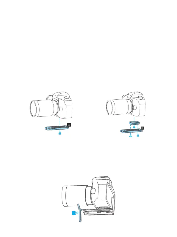 Attach the quick release plate to camera by tightening the screw.