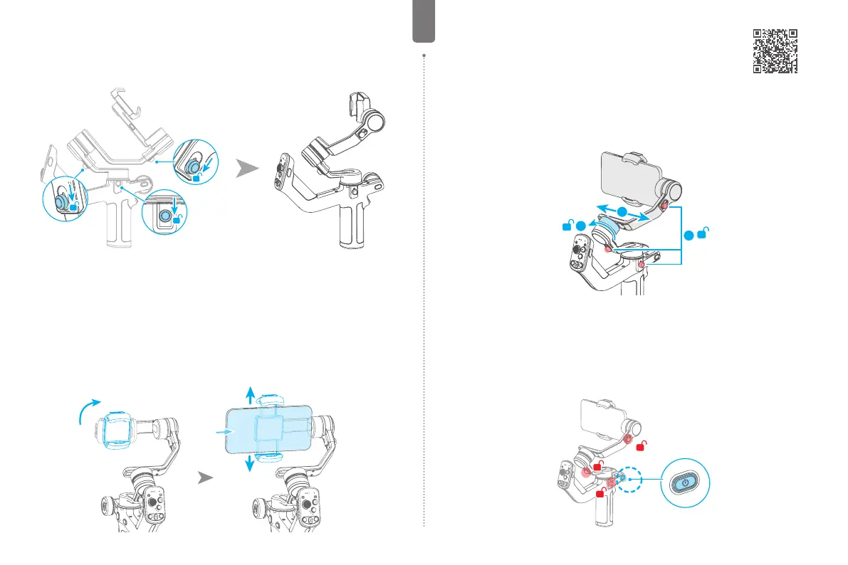 (1) 3 つのモーターロック①を解除し、スマホの傾き方向を確認します。