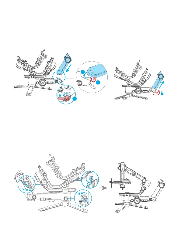 levers to the unlocked position and adjust the gimbal to gimbal balancing position,