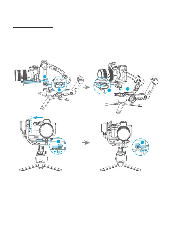 Unlock the quick release plate safety lock ① , push the plate with the mounted