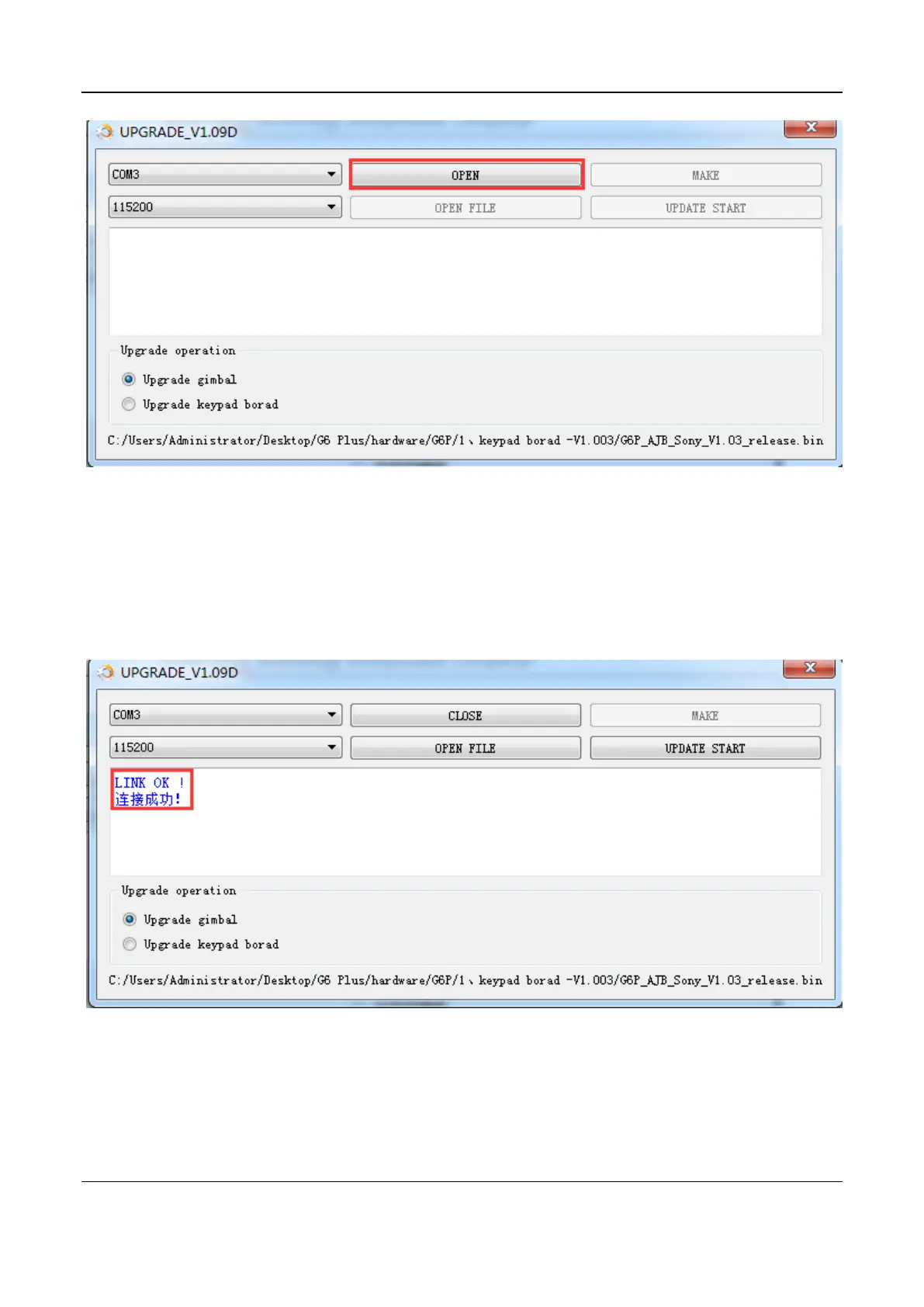 connection between the gimbal and the computer will be established automatically,