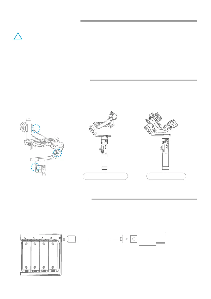 *Please fully charge the batteries before power on the gimbal for the first time.
