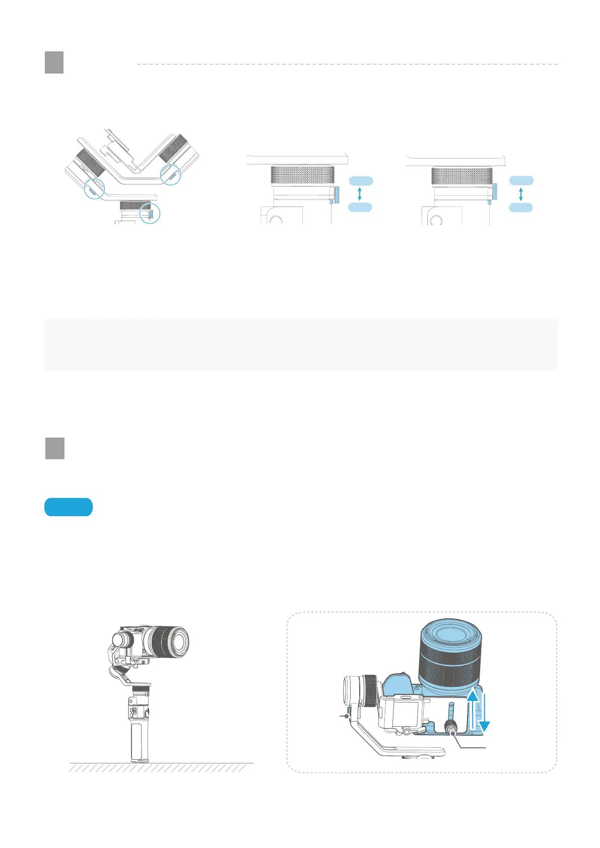 (1) Let the gimbal stand on a horizontal plane, unlock the tilt axis position lock.