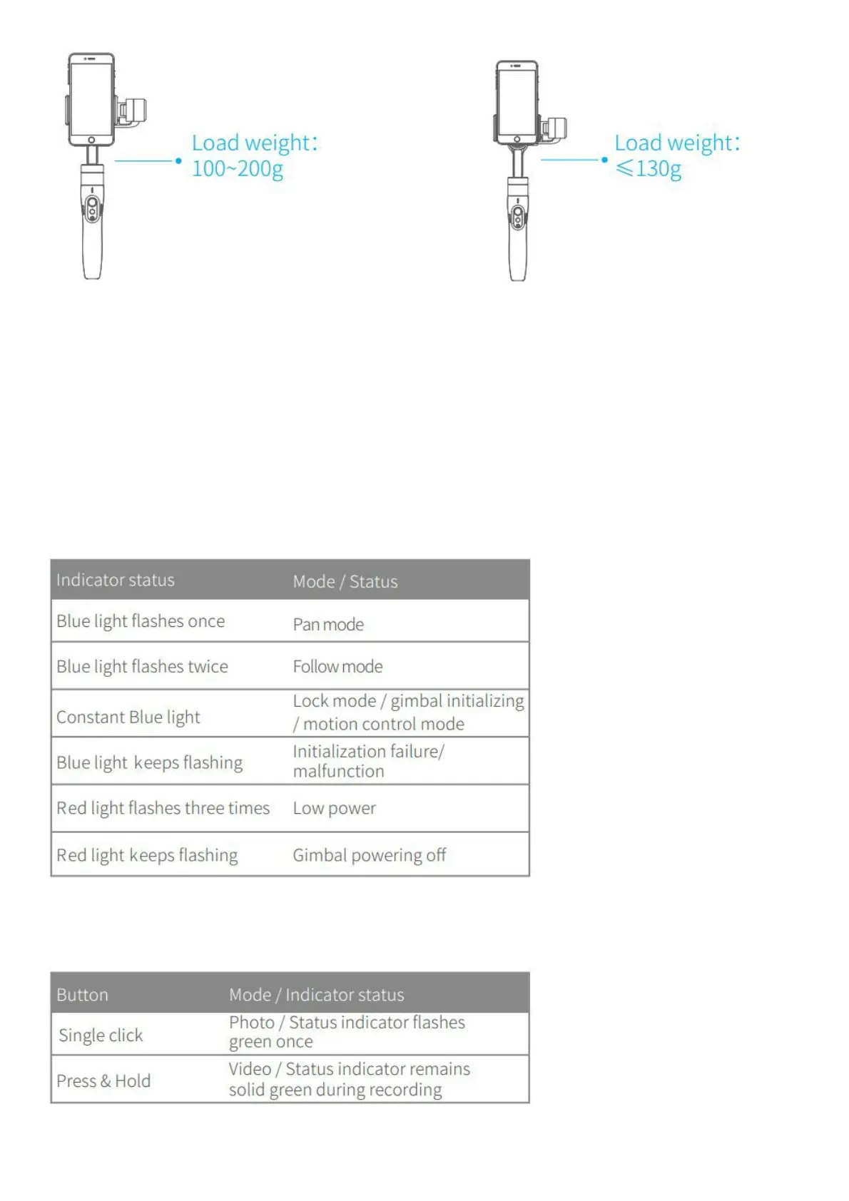 ◾ When battery is low, the status indicator will blink red three times every 5 seconds. Please charge gimbal .