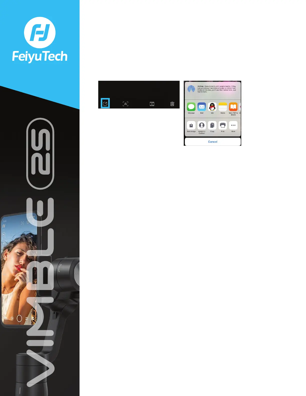 11) How do I share pictures and videos in the Feiyu On App?