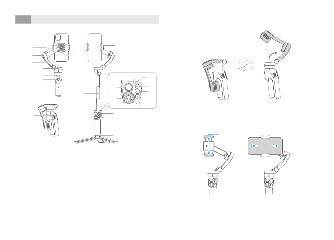 Lorsque le stabilisateur est mis hors tension, ouvrez le clip du téléphone mobile et placez-le au
