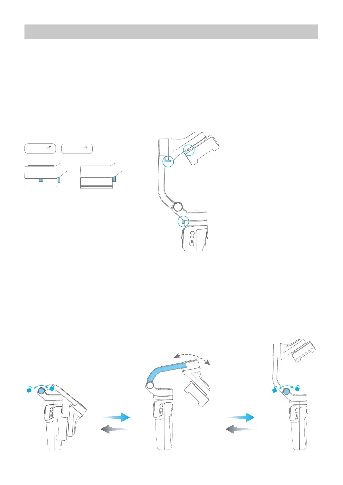 (1) Unlock the three-axis clamp before powering on the gimbal.